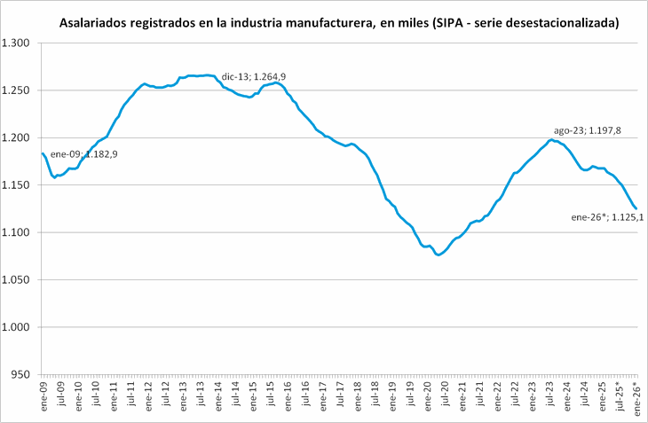 Pese a que la caída de enero estuvo explicada fundamentalmente por los recortes en el Estado, el empleo industrial muestra una dinámica alarmante. Está en los niveles más bajos de las últimas dos décadas.