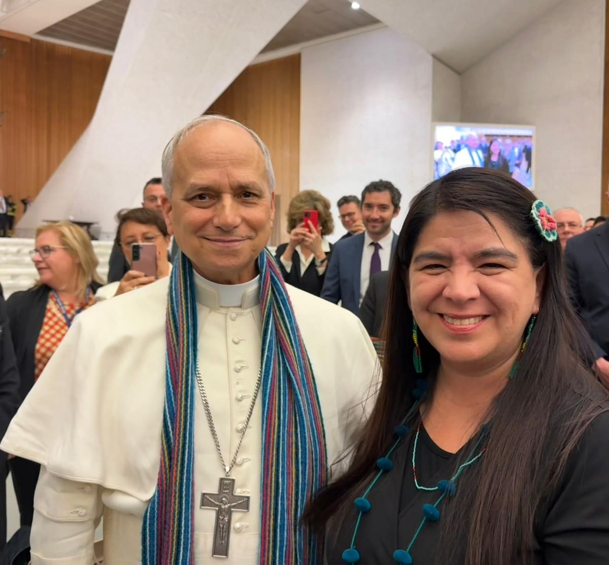ROMA.- Paola Ugaz es la periodista peruana que el lunes pasado se hizo popular por ponerle al papa León XIV una colorida chalina de alpaca andina y al sacarse, sonriente, un foto con él, después de su primera audiencia con la prensa internacional.