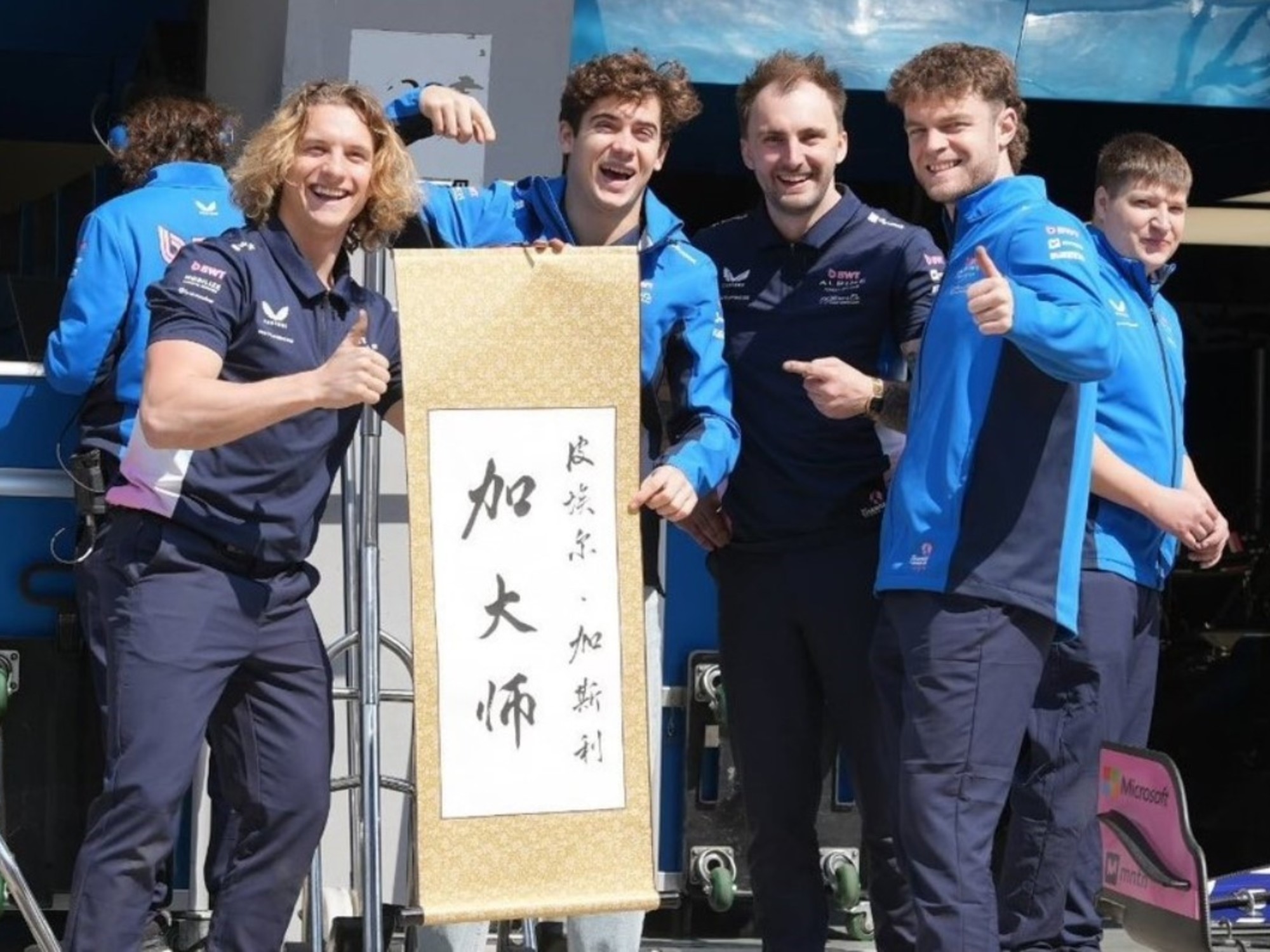 Si bien el paulista se llevó ambos títulos en las últimas dos temporadas, la competencia no impidió que, con el tiempo, forjaran una gran amistad. La imagen de este reencuentro se sumó a la de Colapinto posando en el box de Alpine, donde se mostró sonriente, sosteniendo un cartel con letras chinas y rodeado del equipo técnico de la escudería de Enstone.