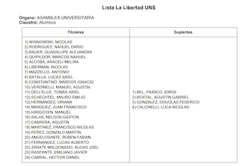 “Nos avergüenza mucho lo que pasó. Se hizo un acuerdo en el que las dos partes iban en conjunto, poniendo la mitad de los nombres cada uno. A último momento, Aldana nos pasó sus nombres, que eran presidiarios, pero nosotros desconocíamos que venían de ahí”, explicó a este medio Juan Manuel Masson, miembro de La Libertad UNS y estudiante de Economía.
